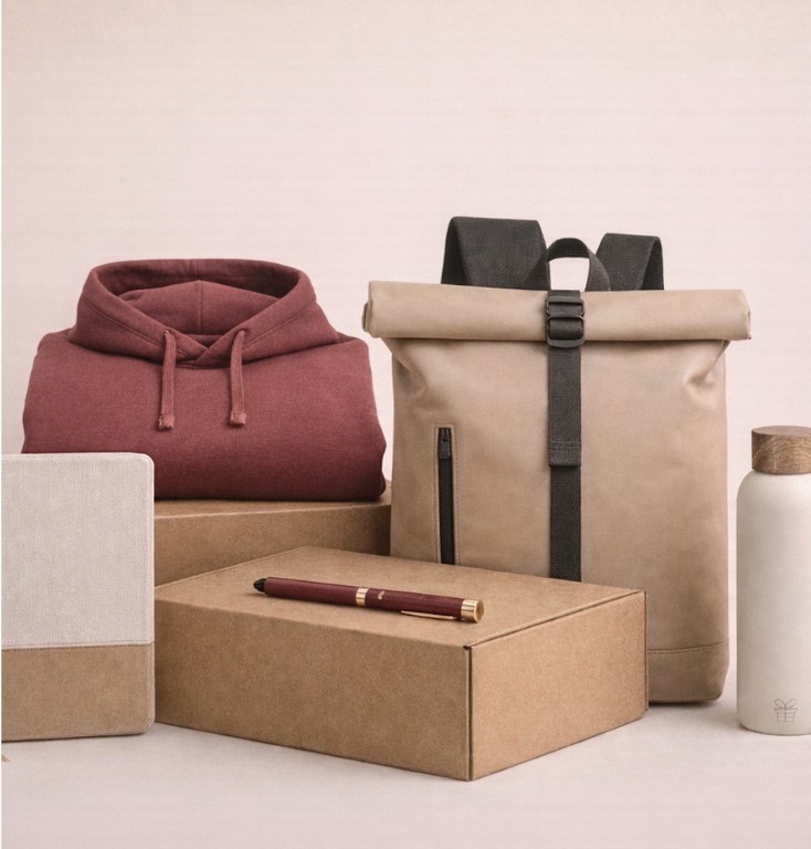 - Best-sellers faciles à offrir : stylos, mugs, gourdes, tote bags, accessoires bureau
